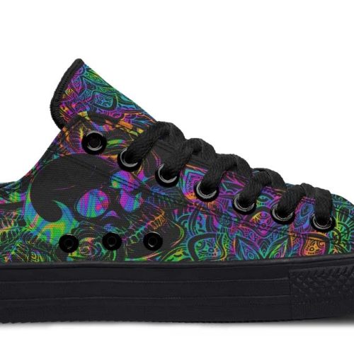 Rainbow Skull Hippie Low Top Sneakers – Vibrant Festival Shoes
