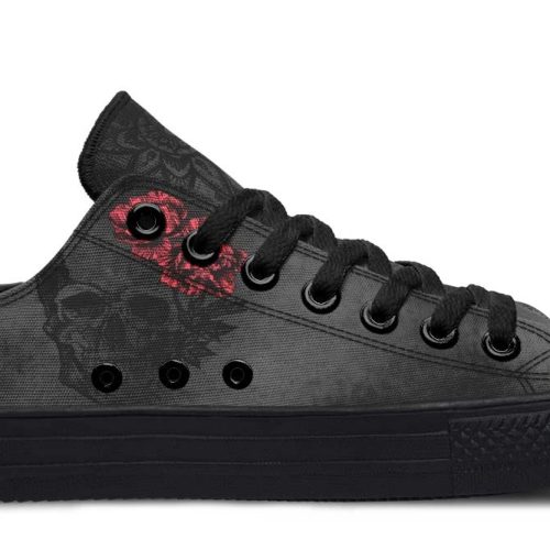 Skull Garden Black Low Top Sneakers – Floral Gothic Style