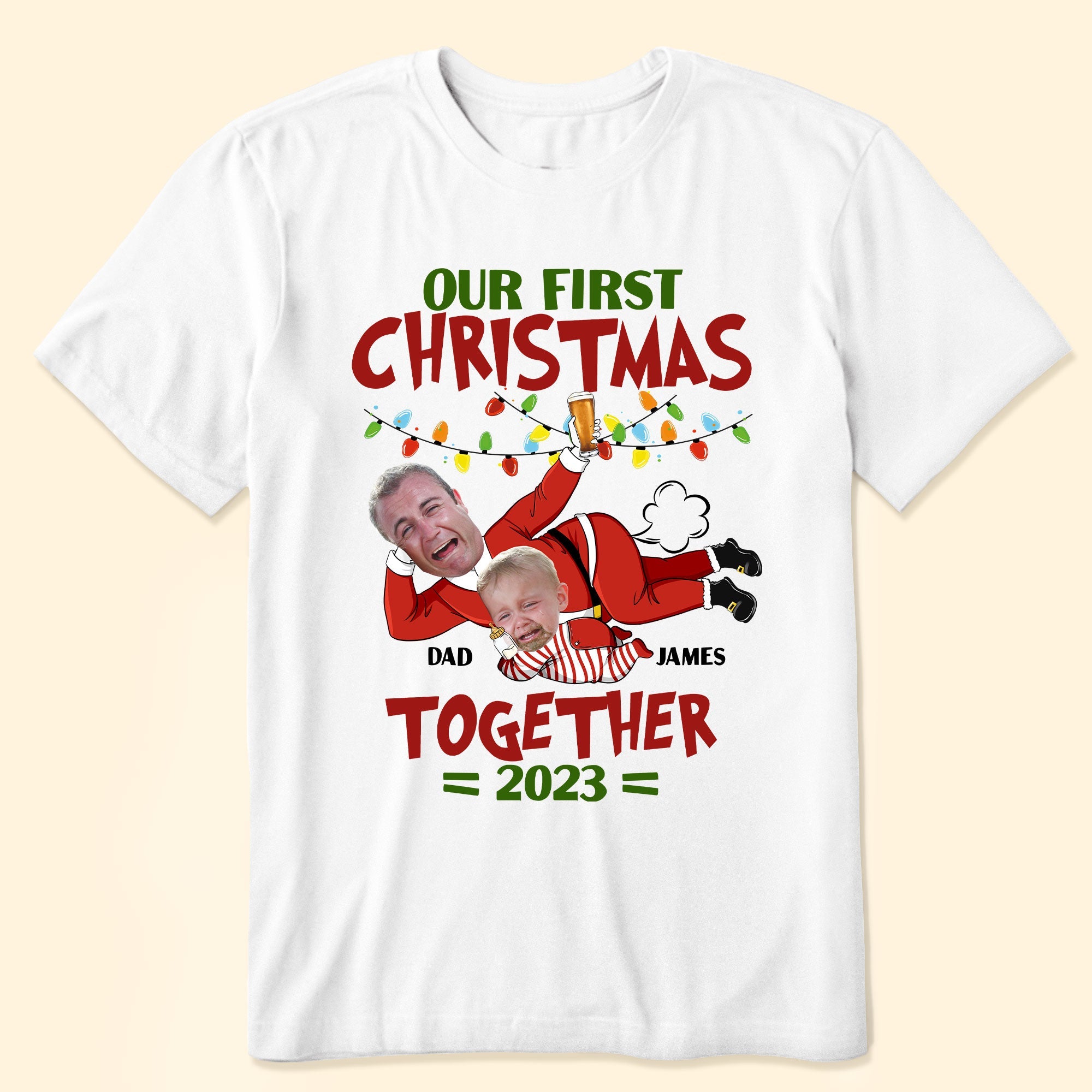 Our First Christmas Together – Personalized Photo Matching Shirt And Baby Onesie